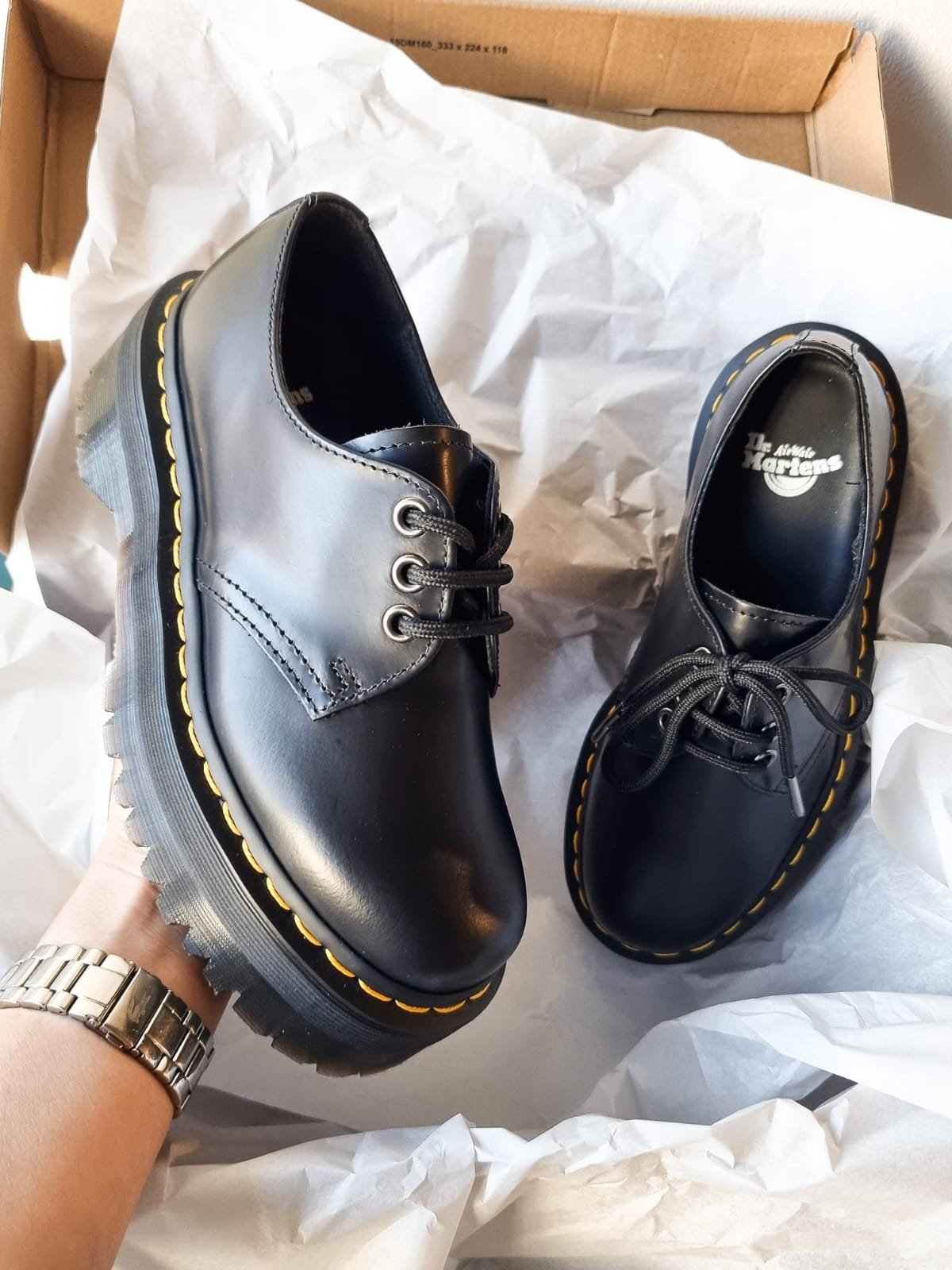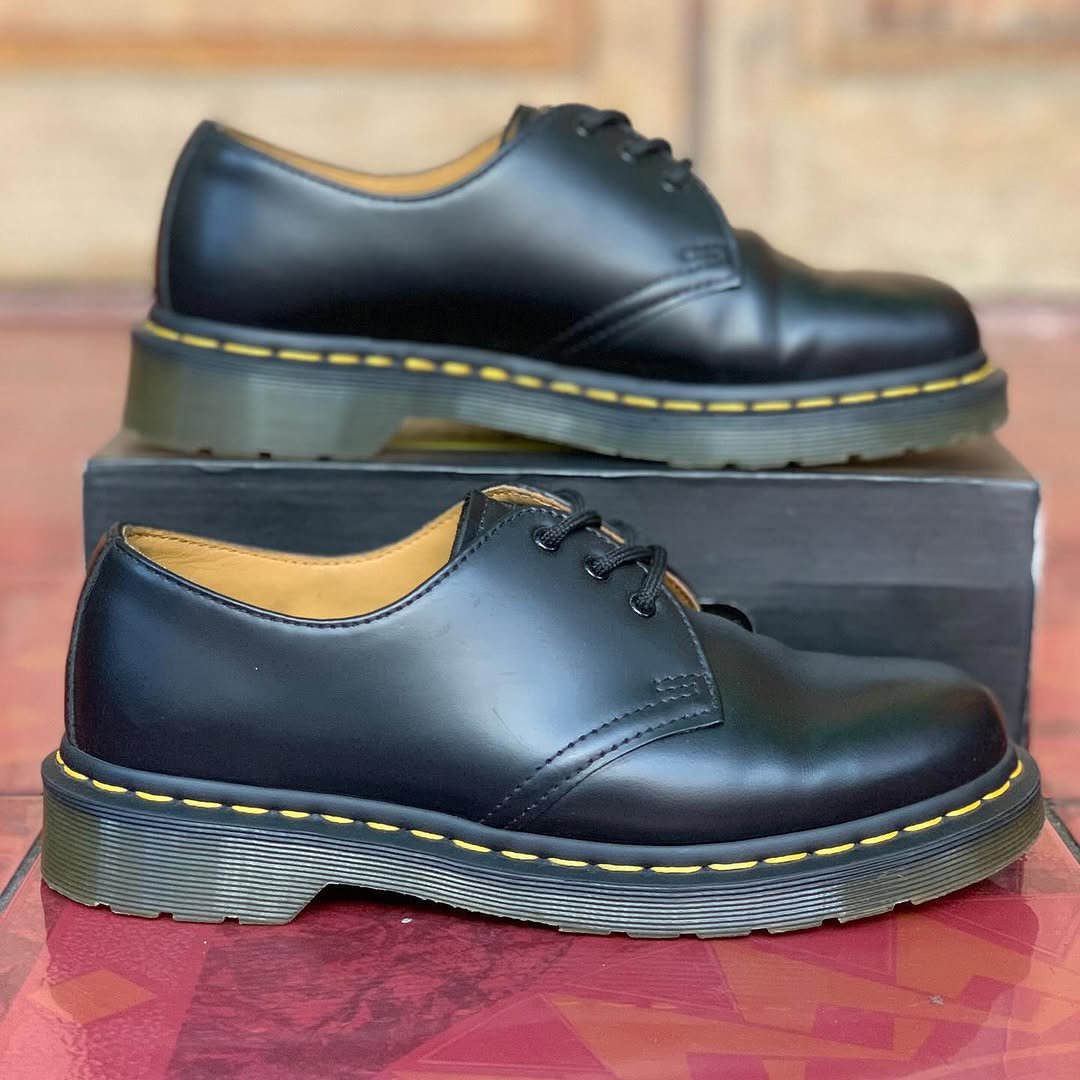 This iconic silhouette redefines the classic 3-eye shoe with a timeless, utilitarian edge, featuring a premium Smooth leather upper and the signature yellow welt stitching . Its streamlined, low-profile design is secured by a traditional lacing system, offering a structured fit and effortless versatility across all seasons. Built on the legendary AirWair™ air-cushioned sole that is heat-sealed and welted for maximum strength, it delivers reliable comfort and long-lasting durability for a bold, subcultural look.