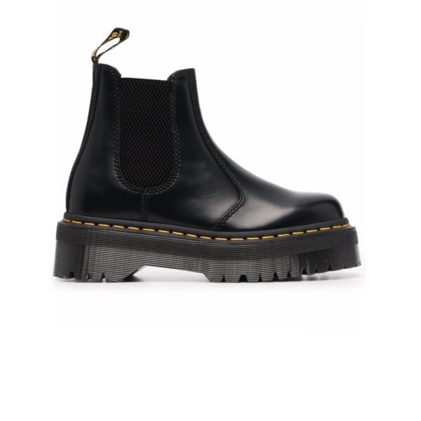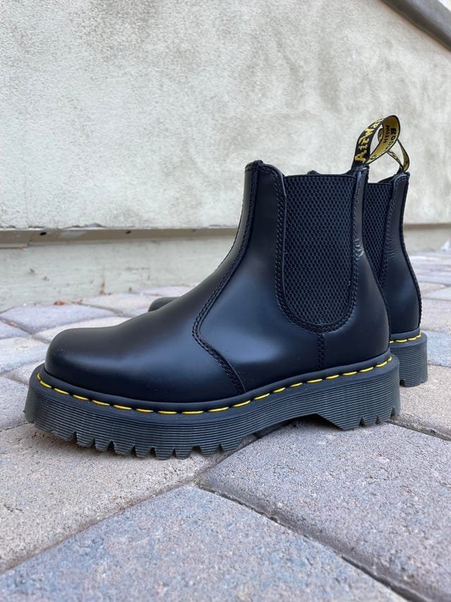 This iconic Chelsea silhouette redefines the classic pull-on boot with a sleek, utilitarian edge, featuring a premium Smooth leather upper and signature yellow welt stitching. Its streamlined, low-profile design is defined by elasticized side gussets and a scripted AirWair™ heel loop, offering a secure, flexible fit with effortless on-and-off access. Built on the legendary AirWair™ air-cushioned sole that is heat-sealed and Goodyear-welted for maximum strength, it delivers a polished, versatile look with the long-lasting durability of a true subcultural icon.