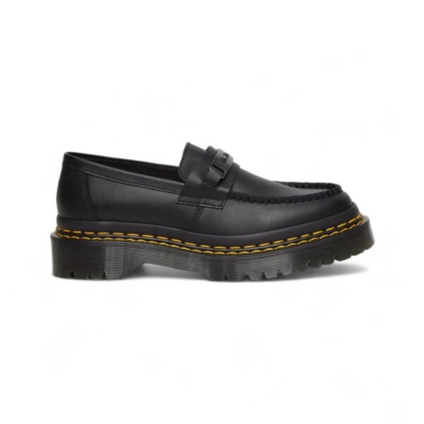 This iconic Penton loafer redefines the classic penny silhouette with a bold, utilitarian edge, featuring a premium Smooth leather upper and signature yellow welt stitching. Its streamlined, low-profile design offers a slip-on fit with effortless versatility across all seasons. Built on the legendary AirWair™ air-cushioned sole that is heat-sealed and Goodyear-welted for maximum strength, it delivers a polished, subcultural look with the long-lasting durability of a true Dr. Martens icon.