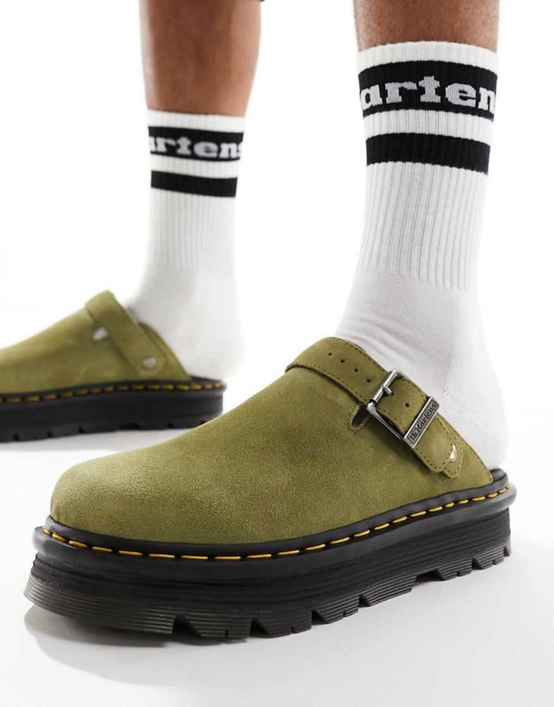 Dr. Martens Zebzag Suede Slingback Platform Mule Muted Olive