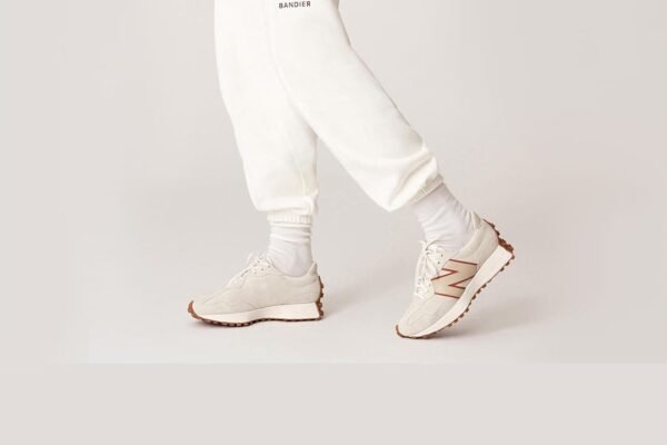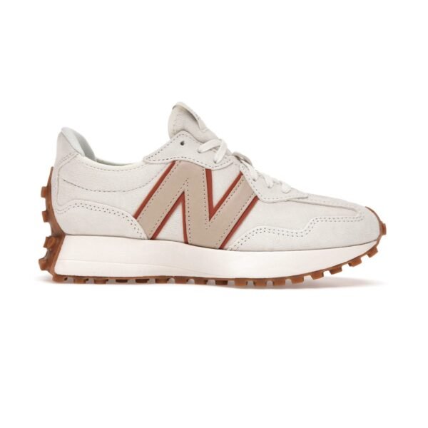 The New Balance 327 is a modern lifestyle sneaker that blends 1970s heritage running design with a contemporary aesthetic, a flared EVA midsole, and a distinctive trail-inspired lugged outsole that wraps the heel