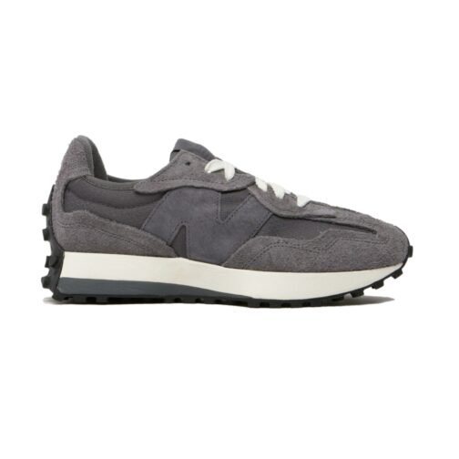 The New Balance 327 is a modern lifestyle sneaker that blends 1970s heritage running design with a contemporary aesthetic, a flared EVA midsole, and a distinctive trail-inspired lugged outsole that wraps the heel