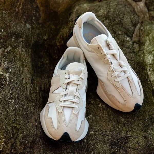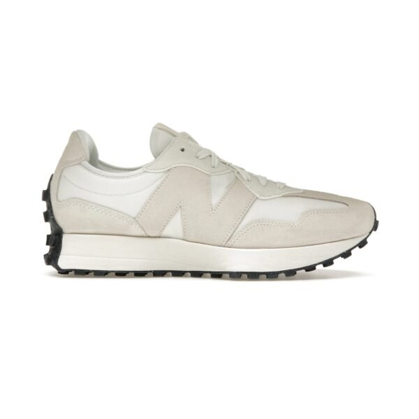 The New Balance 327 is a modern lifestyle sneaker that blends 1970s heritage running design with a contemporary aesthetic, a flared EVA midsole, and a distinctive trail-inspired lugged outsole that wraps the heel