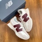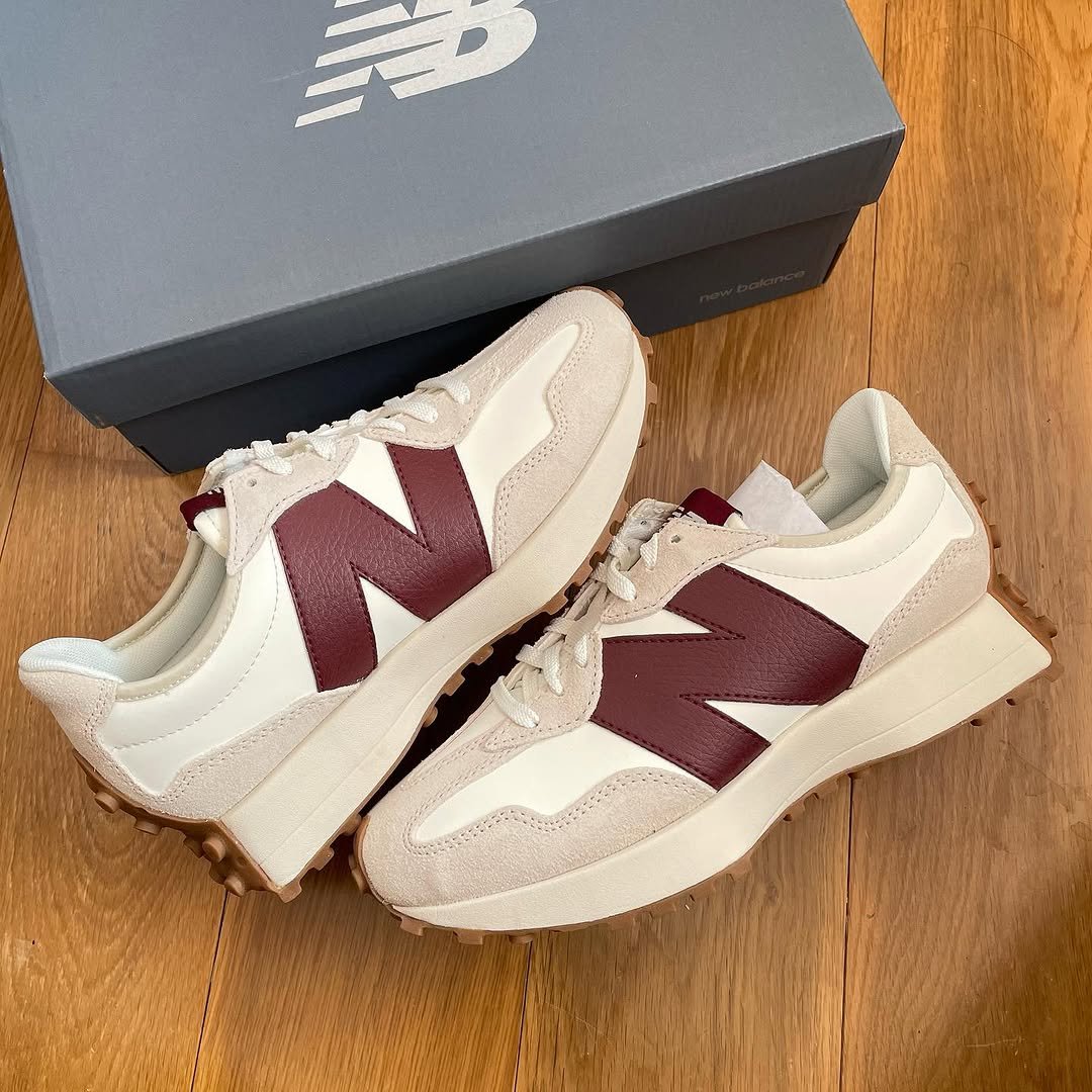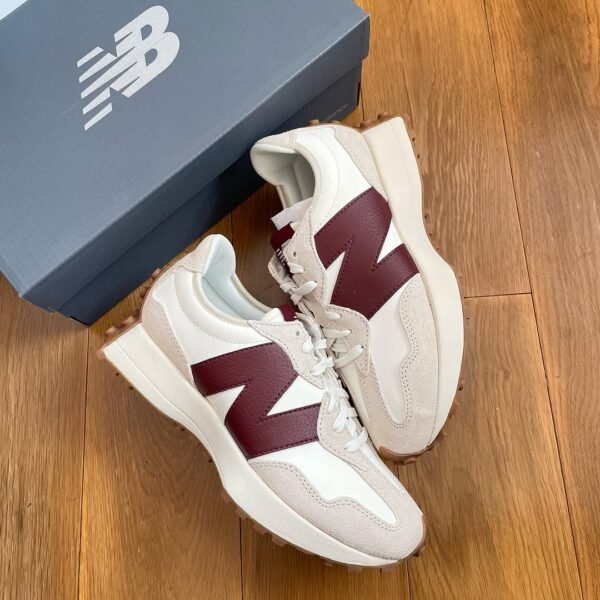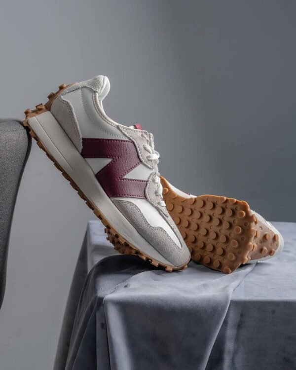The New Balance 327 is a modern lifestyle sneaker that blends 1970s heritage running design with a contemporary aesthetic, a flared EVA midsole, and a distinctive trail-inspired lugged outsole that wraps the heel