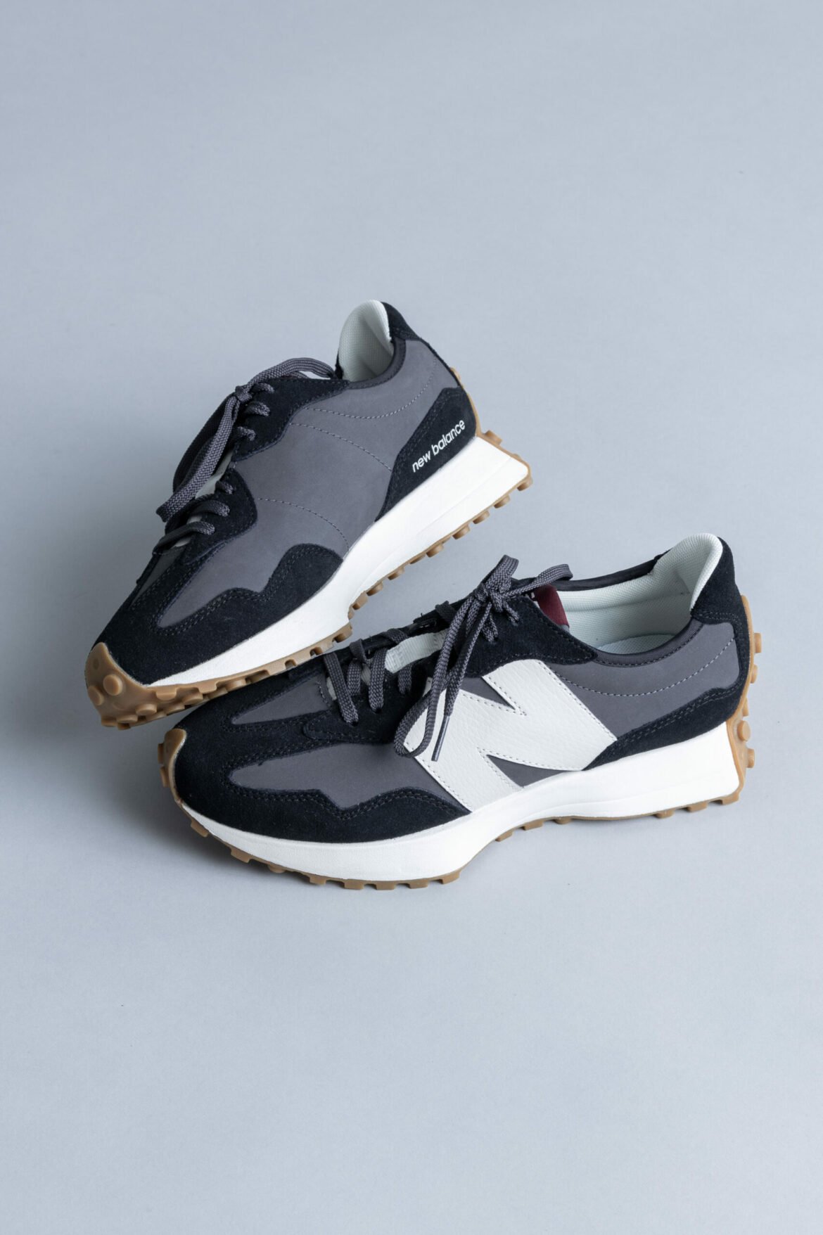 The New Balance 327 is a modern lifestyle sneaker that blends 1970s heritage running design with a contemporary aesthetic, a flared EVA midsole, and a distinctive trail-inspired lugged outsole that wraps the heel