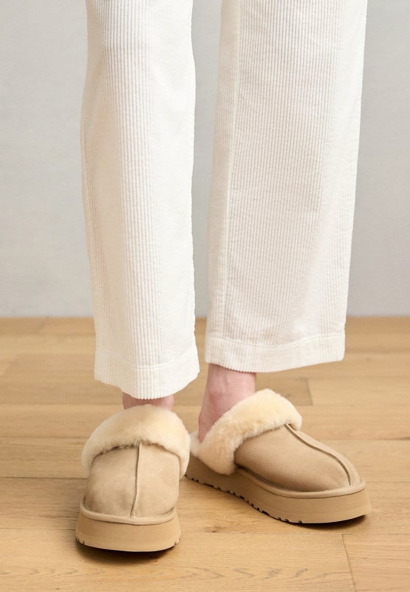 Enjoy elevated comfort with the UGG Disquette — a plush sheepskin slip-on mule with a chunky platform sole that blends cozy warmth and on-trend style for everyday lounging and casual outings