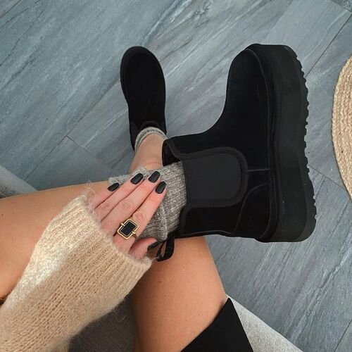 Step up your winter footwear game with the UGG Neumel Platform Chelsea Boot Black — a suede, UGGplush™‑lined Chelsea boot with a cushioned midsole and 2″ platform sole for warmth, comfort, and elevated style.