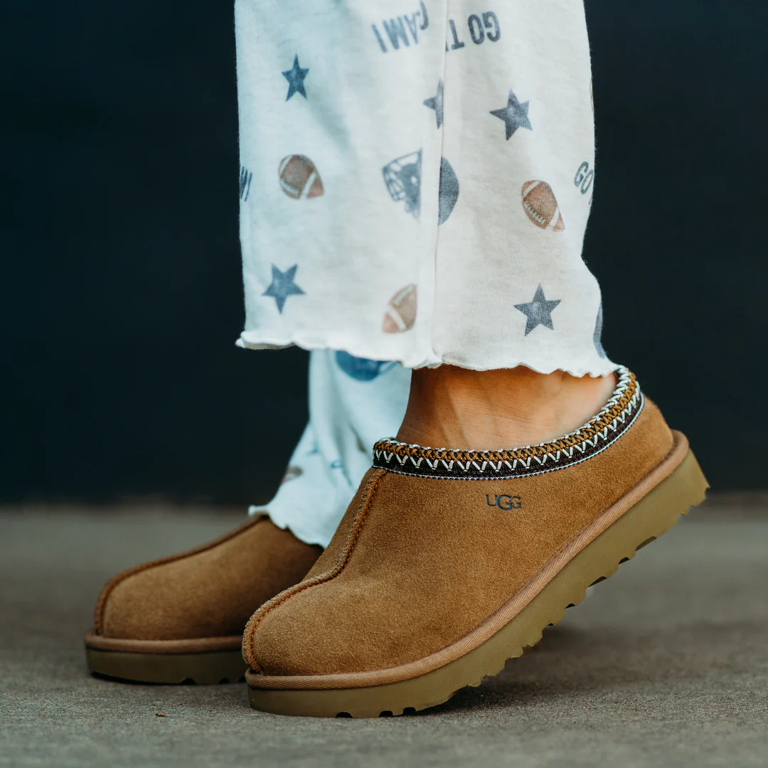 A cozy slip-on slipper crafted with a premium suede upper and signature Tasman braid. Lined with soft UGGplush™ wool blend and finished with a lightweight outsole, perfect for everyday comfort indoors or out.