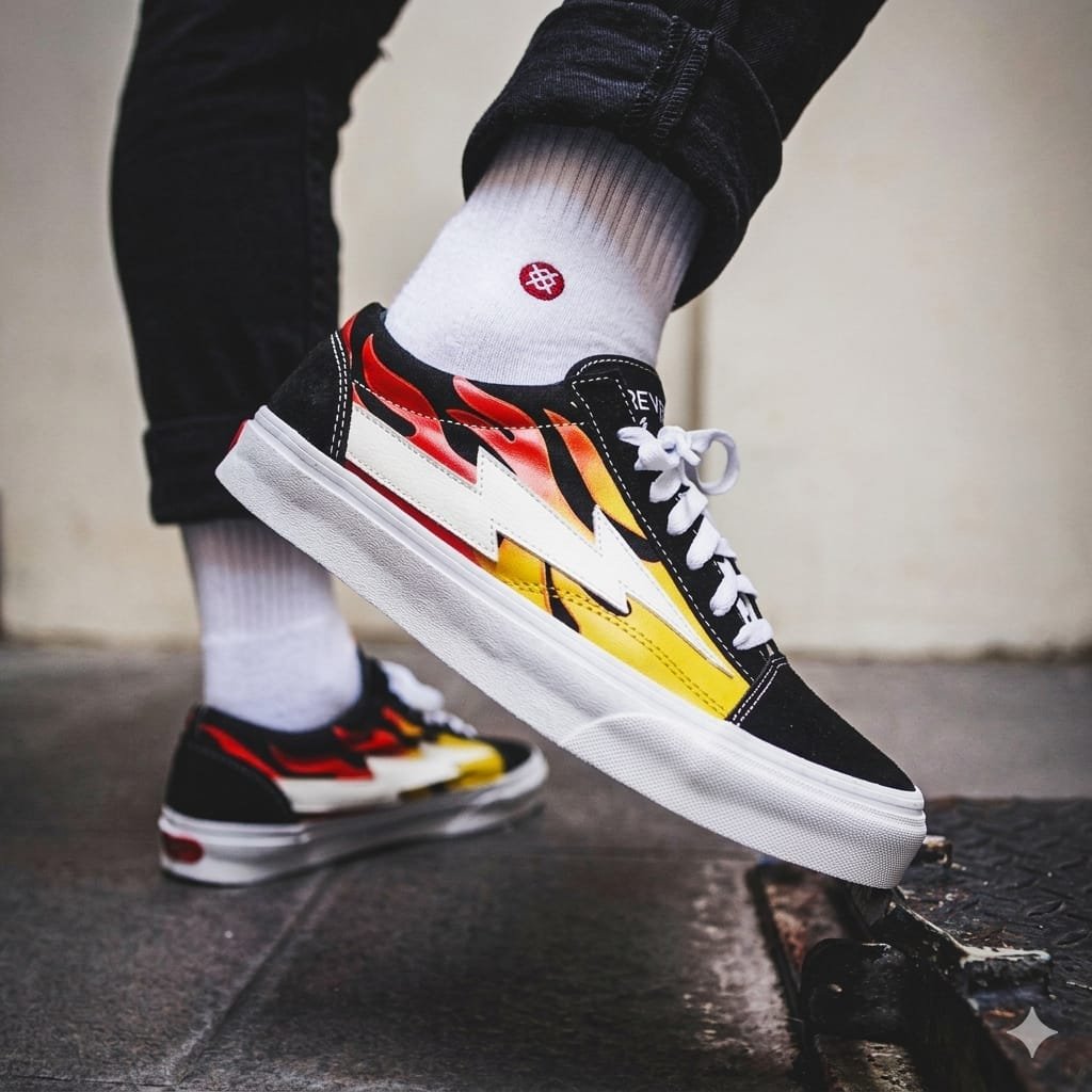 • Streetwear Icon Design: The Vans Revenge X Storm delivers a bold streetwear aesthetic inspired by classic skate silhouettes but distinguished by its signature lightning-bolt branding. The model was introduced by designer Ian Connor and quickly gained popularity in sneaker culture.