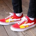 - Lightning Bolt Side Detail: A striking lightning graphic runs across the side panel, replacing the traditional Vans stripe and giving the sneaker its unmistakable identity.